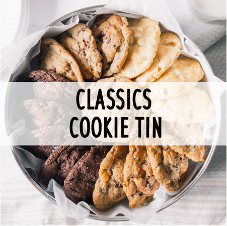 **Order separate from frozen dough. Baked cookies and frozen dough cannot be shipped together. Cookie Tins ship on Tuesdays**